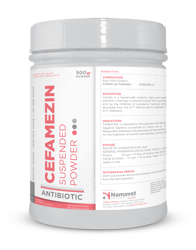 CANESTEN is indicated for the treatment of all infections caused by gram negative bacteria susceptible to Colistin such as : E.coli, Salmonella, Pasteurella, Klebsiella, Pseudomonas and Haemophillus. It is recommended for the treatment of enteritis and diarrhea in poultry, calves and lambs.